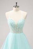 Cute Green A Line Halter Corset Appliques Mini Dress with Lace up Back