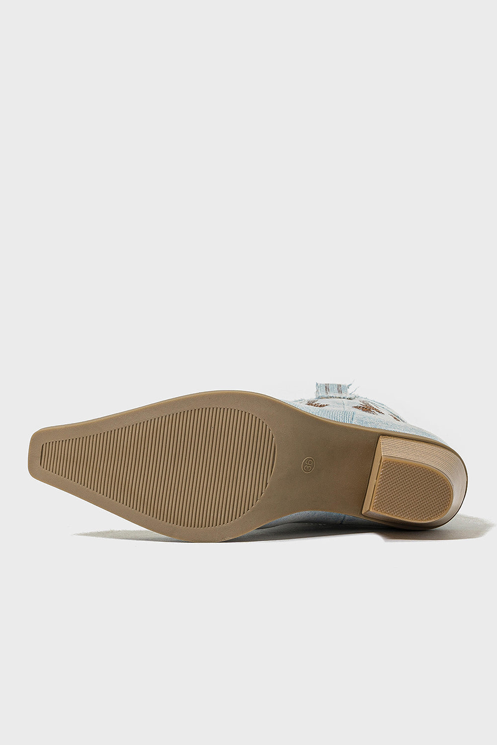 Dark Blue Wide Calf Pointed Toe Chunky Heel Embroidered Cowgirl Boots