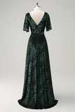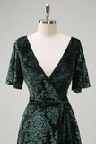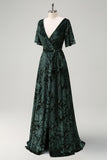 Dark Green V Neck Burnout Velvet Bridesmaid Dress with Slit