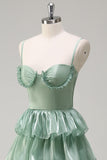 Dusty Sage A Line Spaghetti Straps Tiered Maxi Dress with Slit