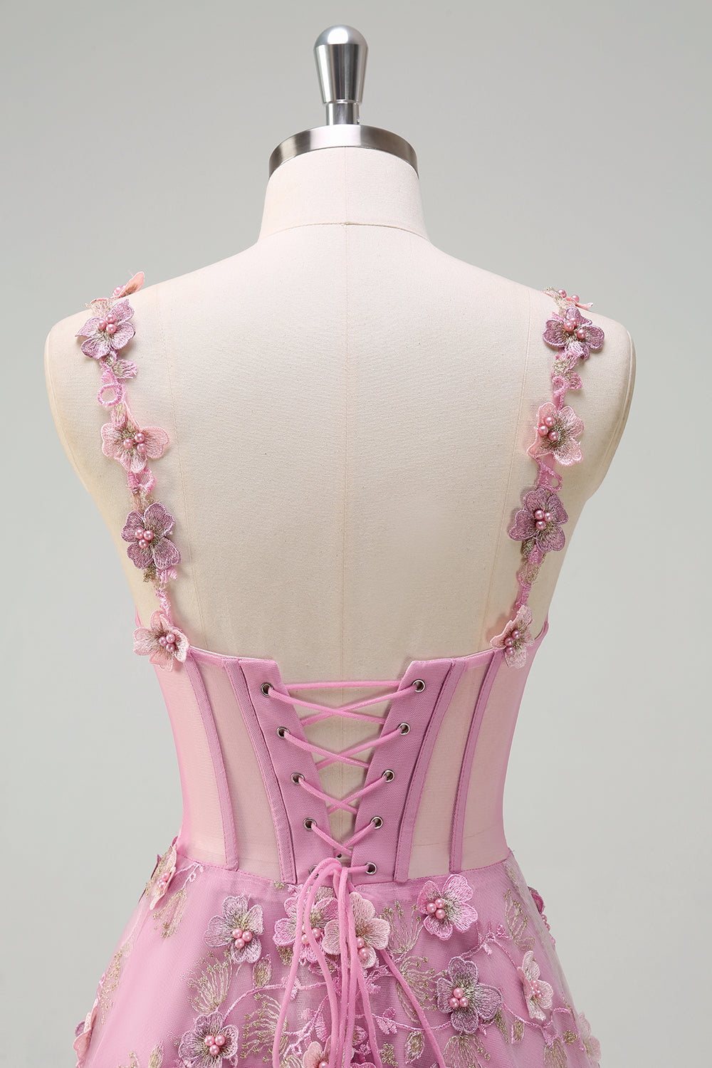 Elegant Taro Appliqued Corset A Line Prom Dress with Slit