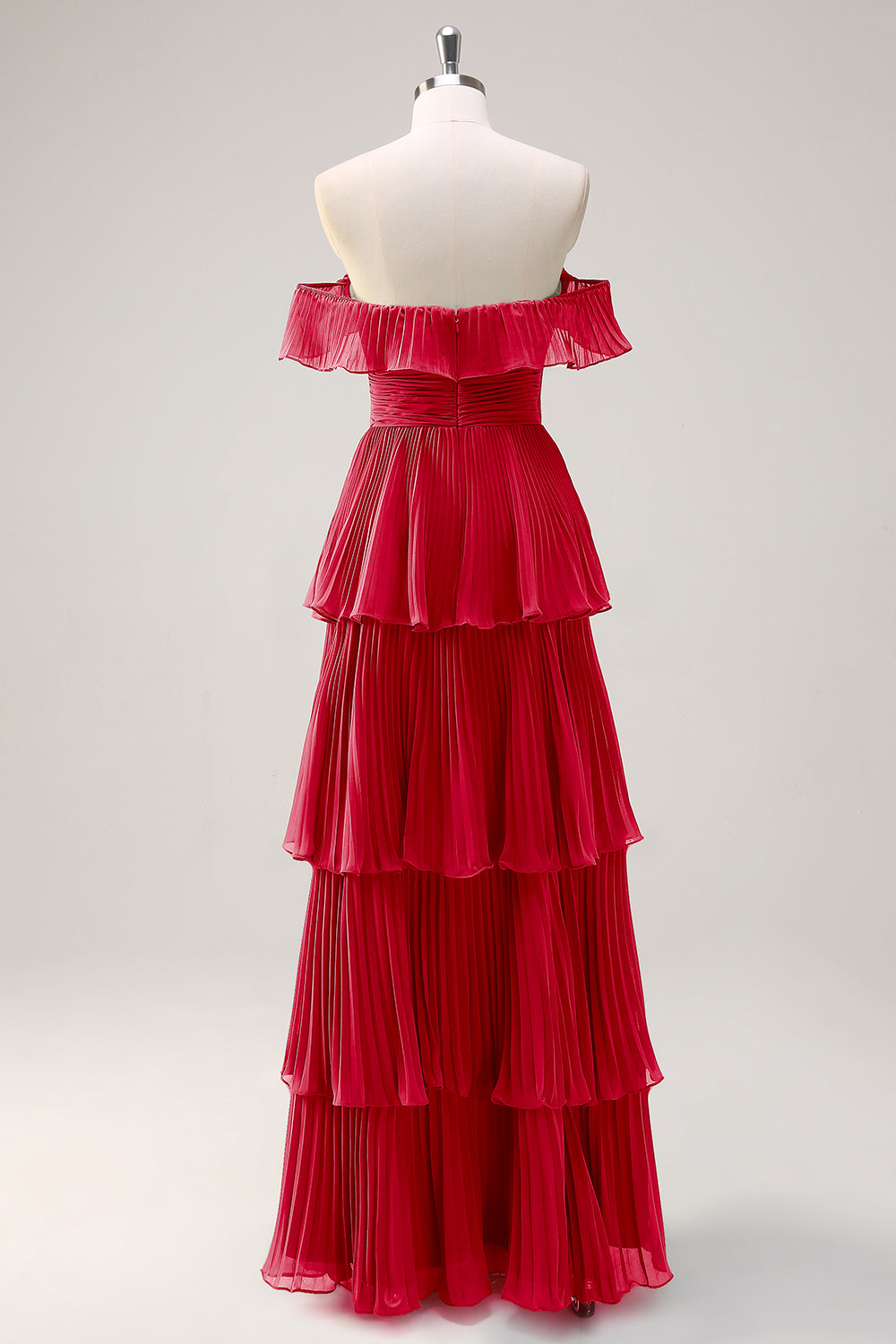 Eucalyptus Tiered A Line Pleated Off the Shoulder Bridesmaid Dress