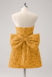 Fuchsia A Line Floral Strapless Mini Dress With Bow