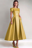 Fuchsia A Line Puff Sleeves Mother of the Bride Dress