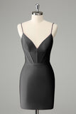 Fuchsia Bodycon Spaghetti Straps Satin Mini Dress