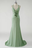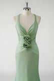 Glitter Green Mermaid Flower Prom Dress with Criss Cross Back
