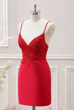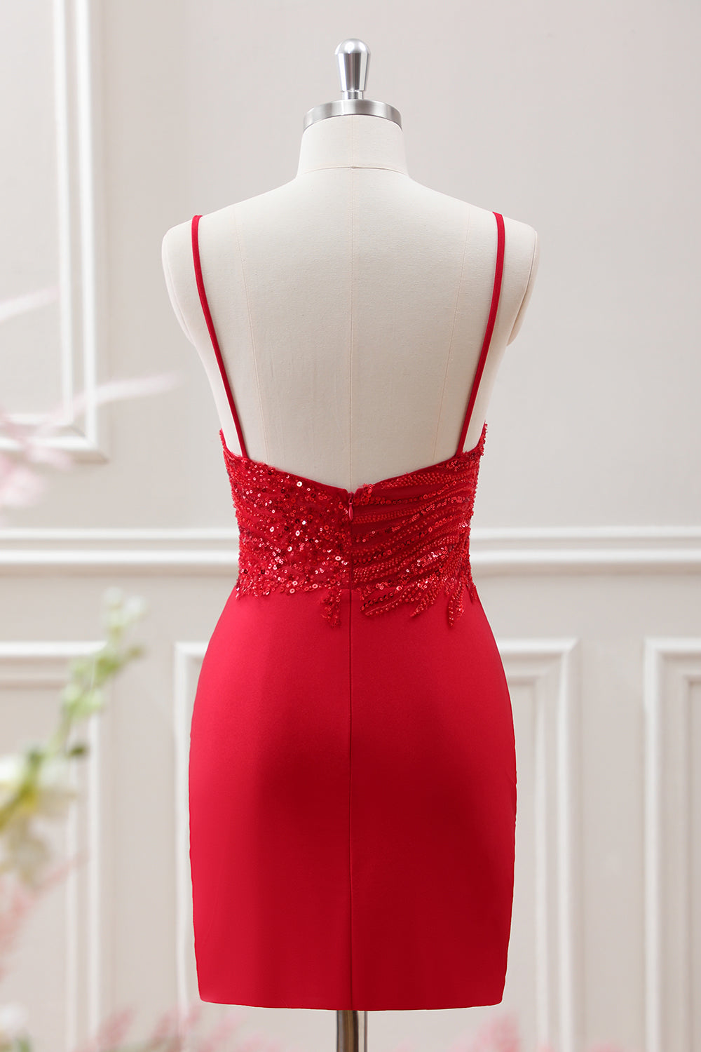 Glitter Red Bodycon Spaghetti Straps Sequined Mini Dress