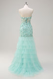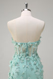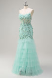 Green Corset Sequined Sweetheart Mermaid Tulle Prom Dress with Appliques
