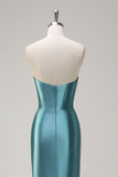 Grey Green Sequined Strapless Corset Mermaid Prom Dress with Slit