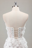 Ivory Beaded Corset 3D Applique Mini Wedding Dress with Detachable Sleeves