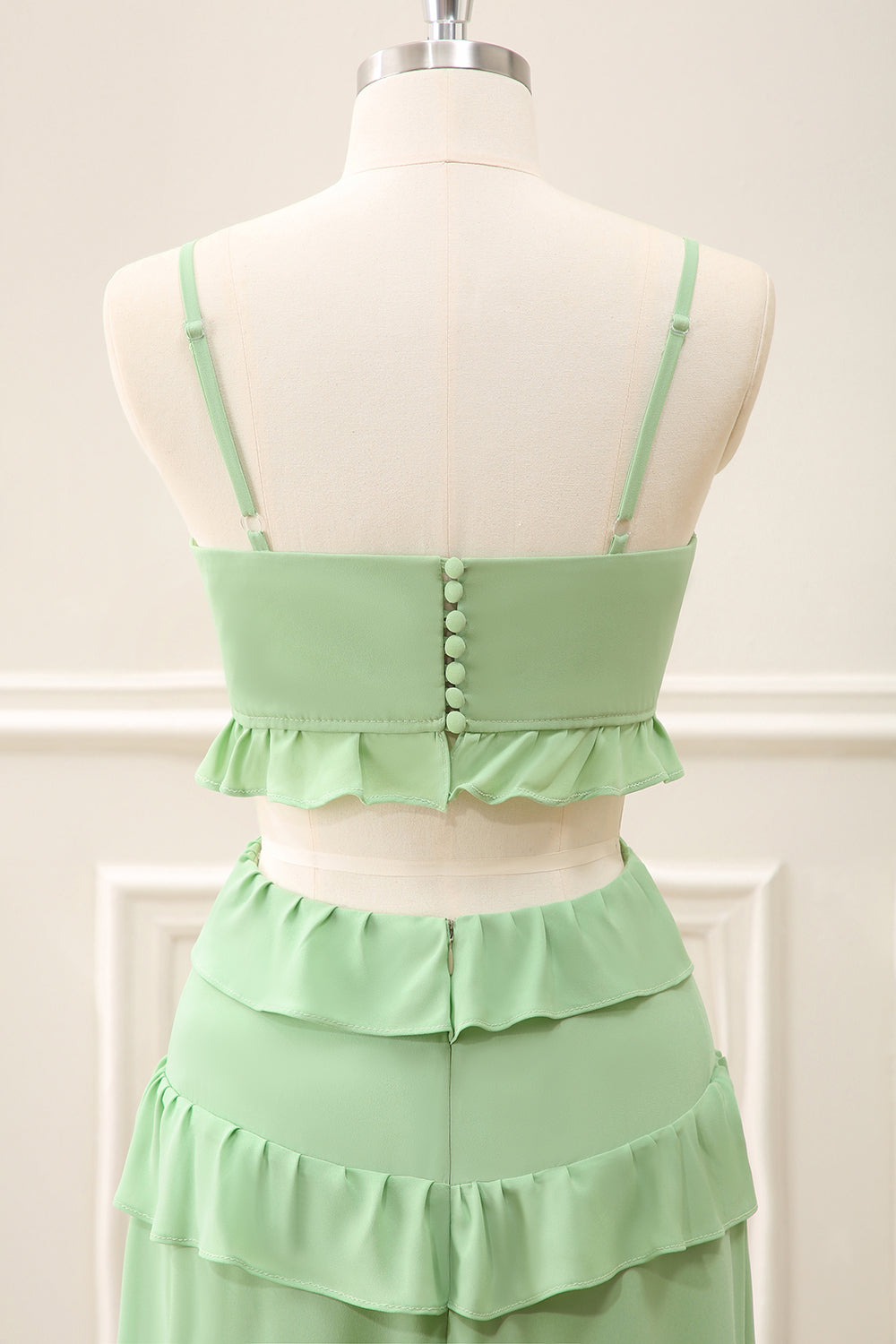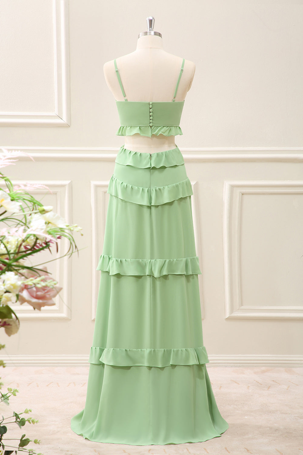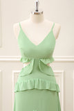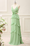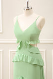 Light Green Chiffon Cut Out Maxi Dress with Ruffles