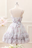 Lilac A-Line Floral Prints Ruffled Tiered Mini Dress