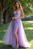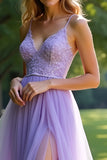 Lilac A Line Spaghetti Straps Organza Prom Dress