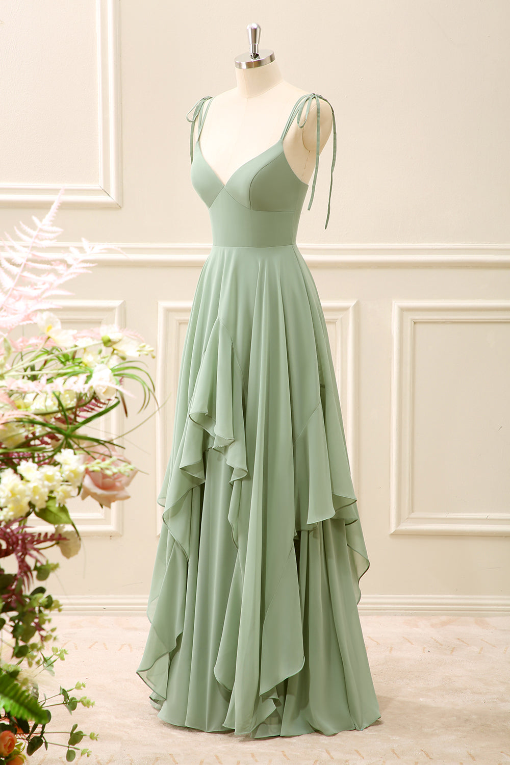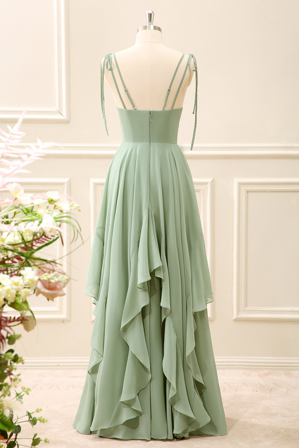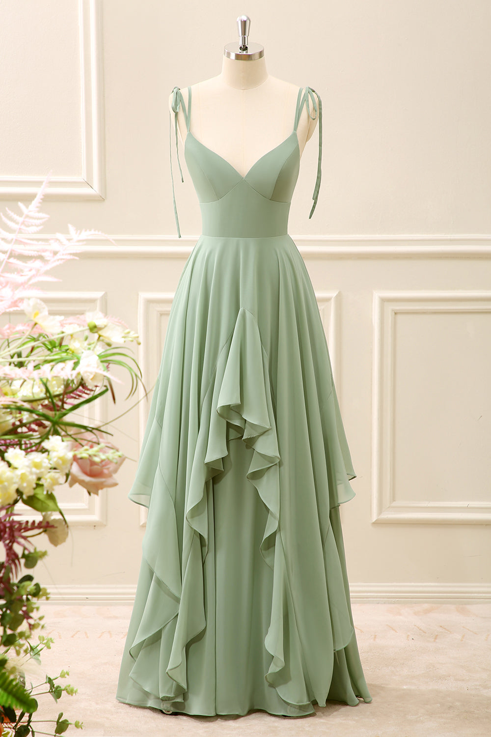 Matcha A Line Chiffon Maxi Dress with Ruffles