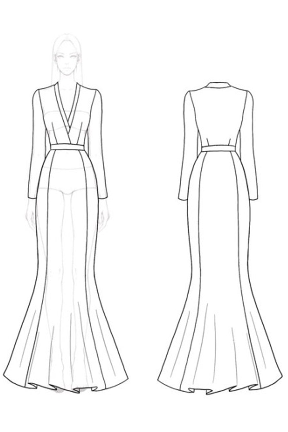 Mermaid Black V-Neck Formal Dress With Long Sleeves