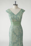 Mermaid Sequined Applique V Neck Green Mother of the Bride Dress