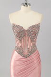 Mermaid Strapless Corset Blush Prom Dress With Beading