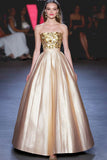 Metallic Satin Gold A Line Strapless Maxi Gala Dress