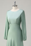 Modest Long Sleeve Round Neck Sage Bridesmaid Dress