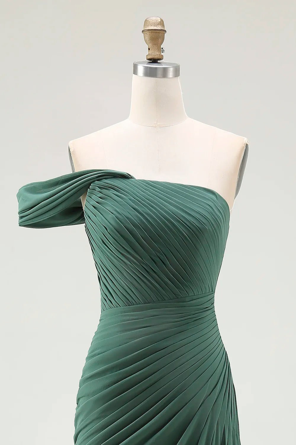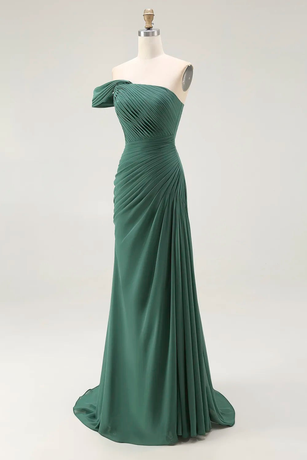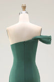 One Shoulder Sheath Pleated Dark Green Long Formal Dress