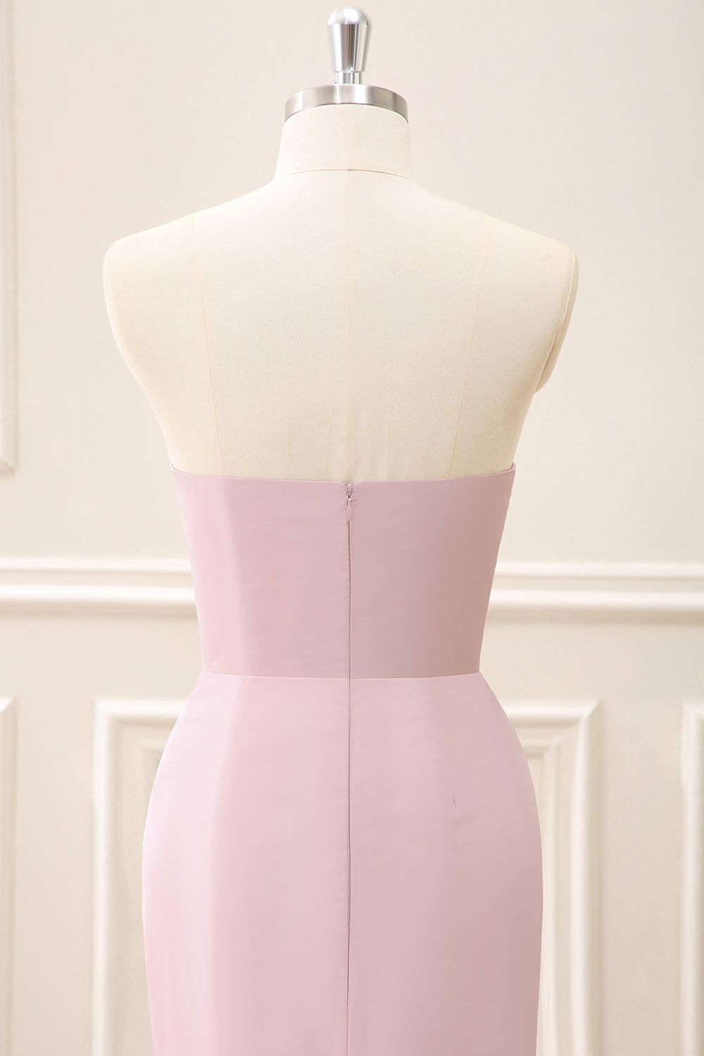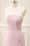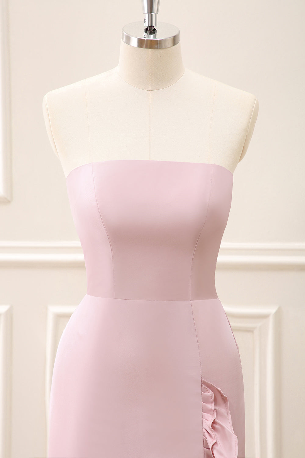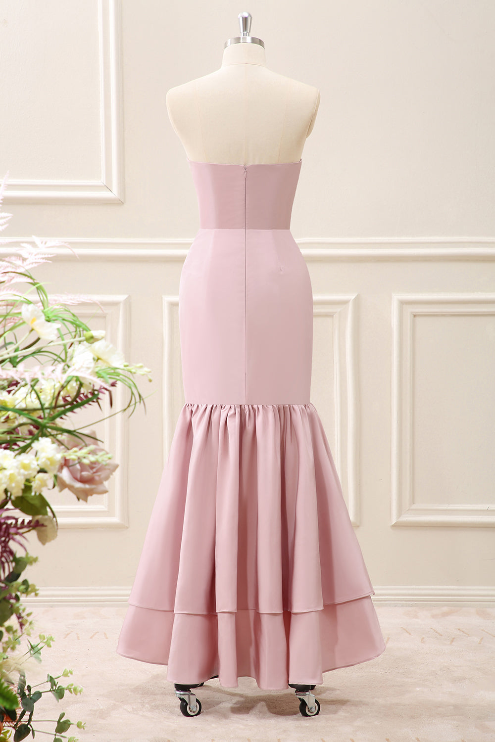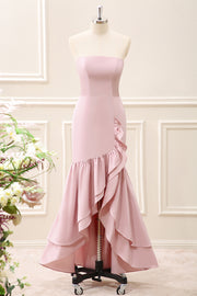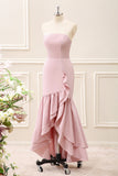 Pink Strapless Mermaid Ruffled Asymmetrical Dress