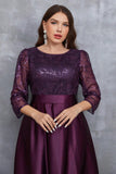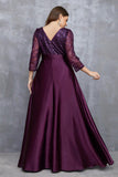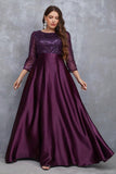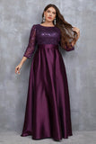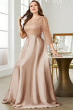 Plus Size Champagne Sequins Round Neck Maxi Dress with Sleeves
