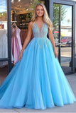 Princess Blue Tulle Lace Applique Long Prom Dress