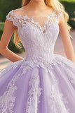Princess Lilac Ball Gown Off the Shoulder Ruffled Tulle Quinceanera Dress with Appliques