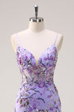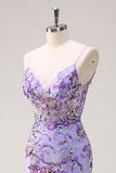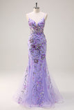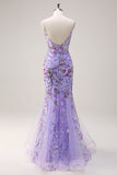 Purple Mermaid Corset Sequin Beaded Backless Prom Dress