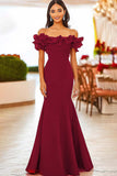 Red Mermaid Off the Shoulder Ruffled Gala Dress