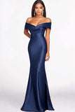 Red Mermaid Off The Shoulder Satin Formal Dress