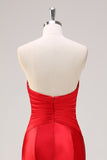 Red Strapless Keyhole Bows Mermaid Prom Dress