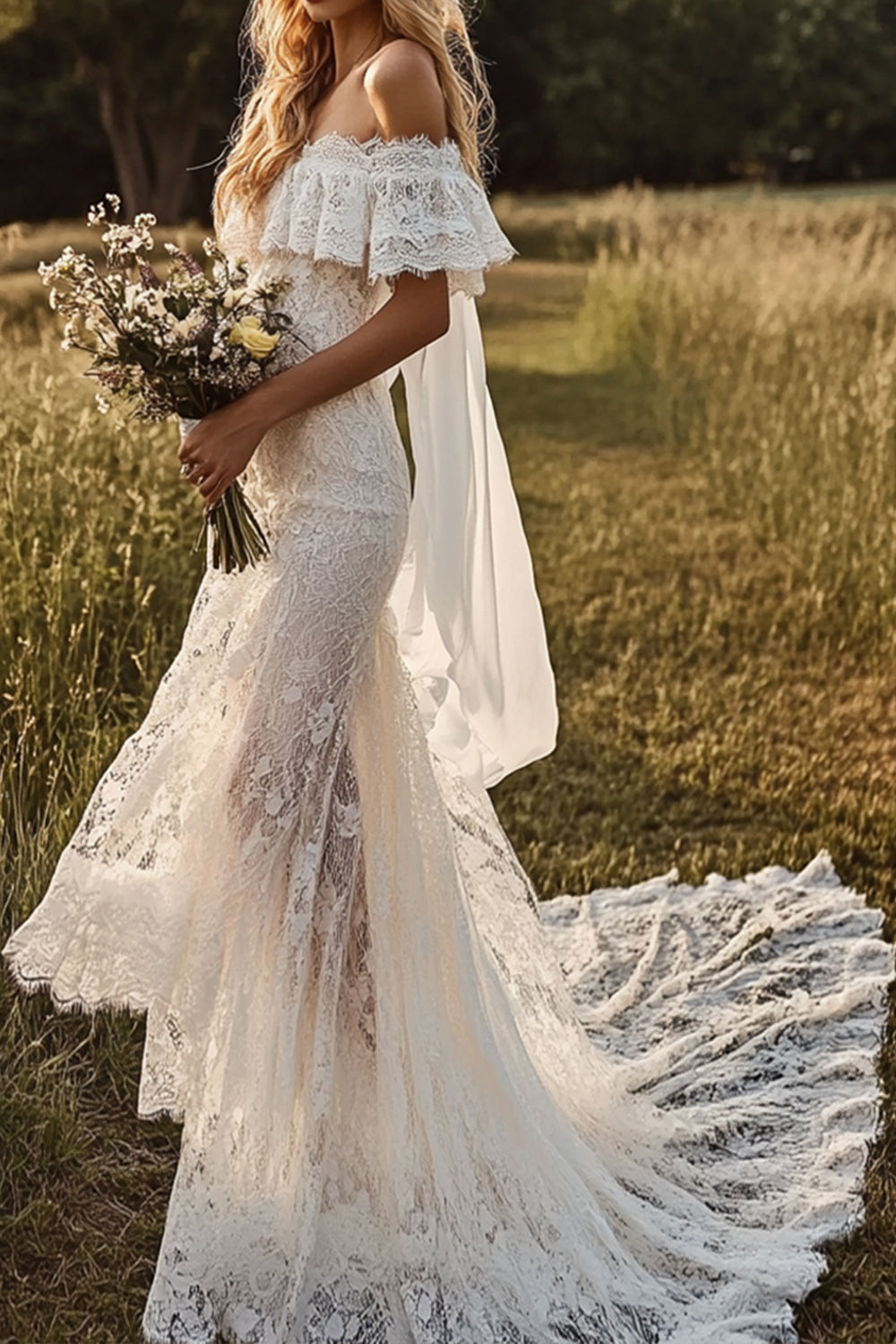 Romantic Ivory Off the Shoulder Lace Wedding Dress