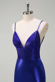 Royal Blue Backless Beaded Mermaid Prom Dress