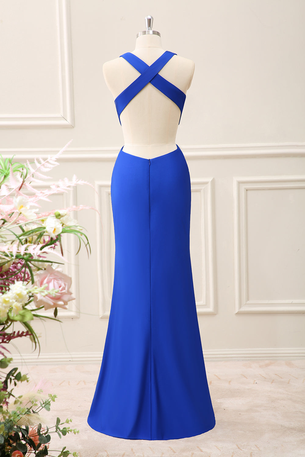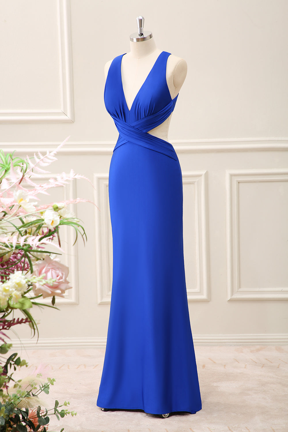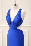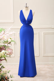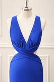Royal Blue Cut Out V Neck Maxi Dress