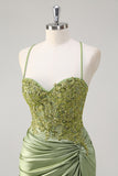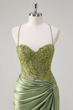 Royal Blue Mermaid Slit Ruched Satin Prom Dress with Appliques