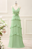 Sky Blue Ruffled Chiffon A Line Tiered Maxi Dress
