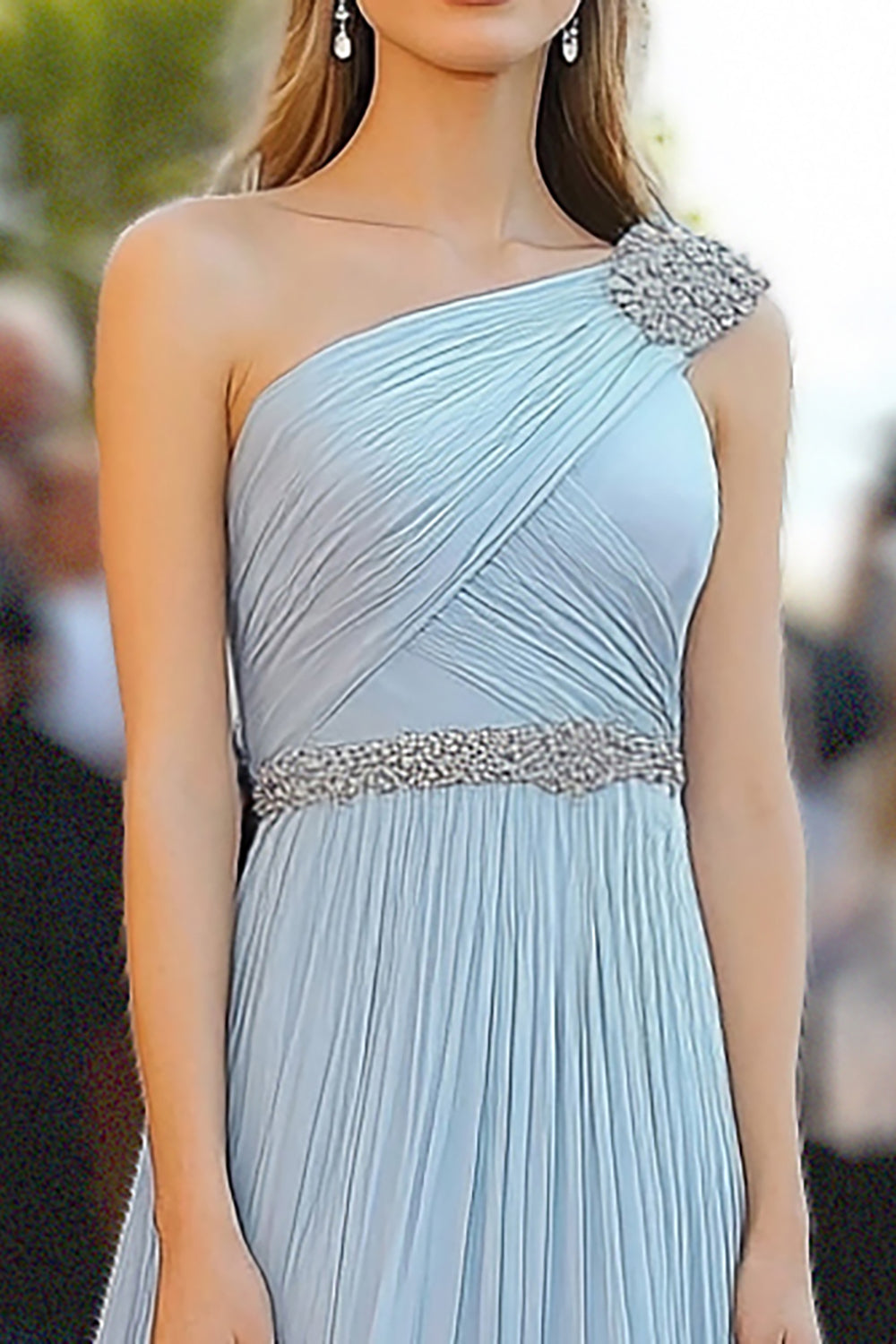 Sky Blue One Shoulder A Line Chiffon Beaded Gala Dress