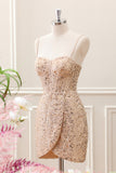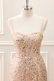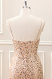 Sparkly Golden Sequined Corset Tight Spaghetti Straps Mini Dress