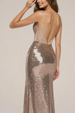 Sparkly Rose Golden Sheath Long Formal Dress With Slit