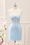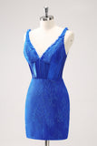 Sparkly Royal Blue Corset Beaded Lace Appliques Tight Mini Dress
