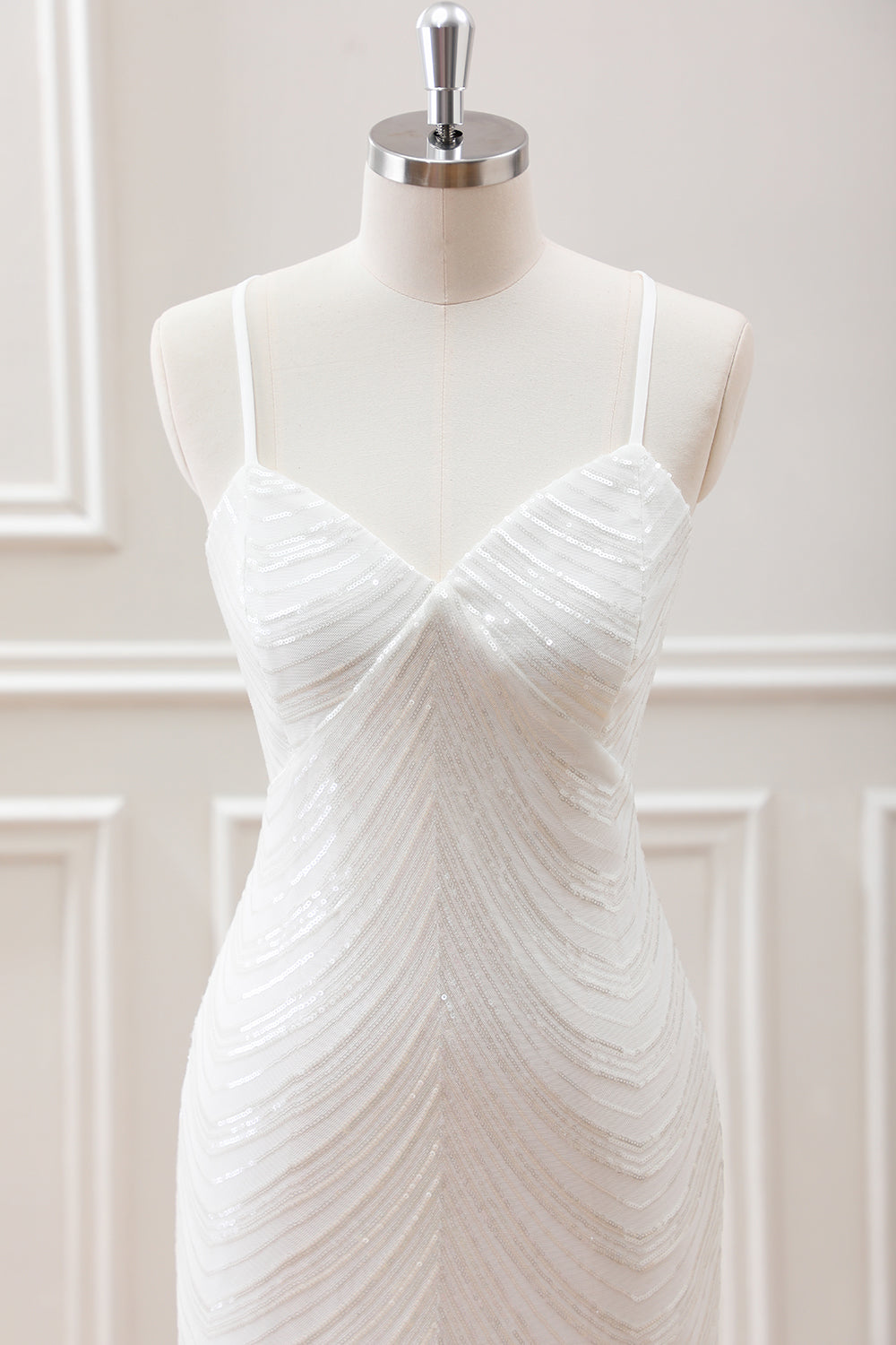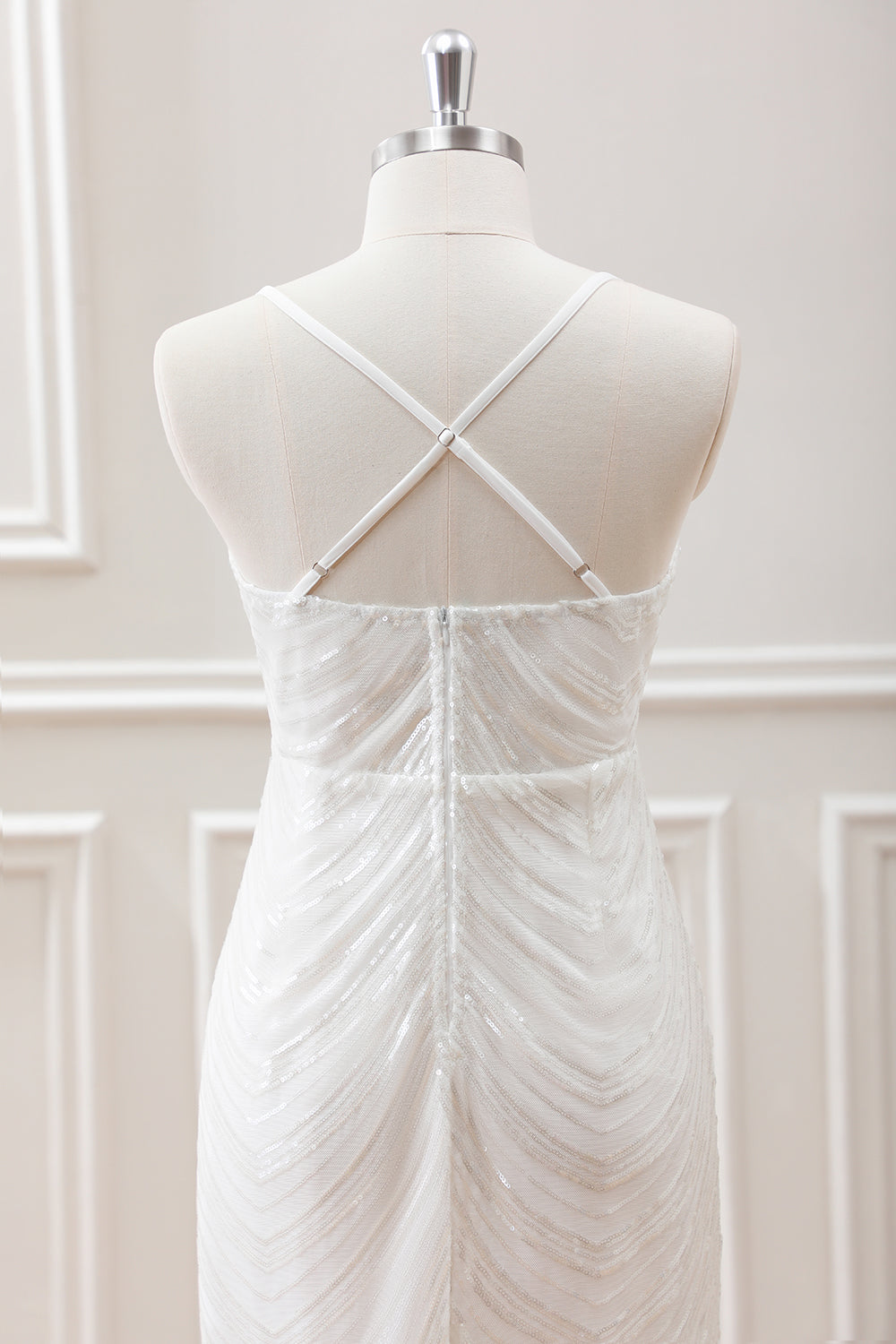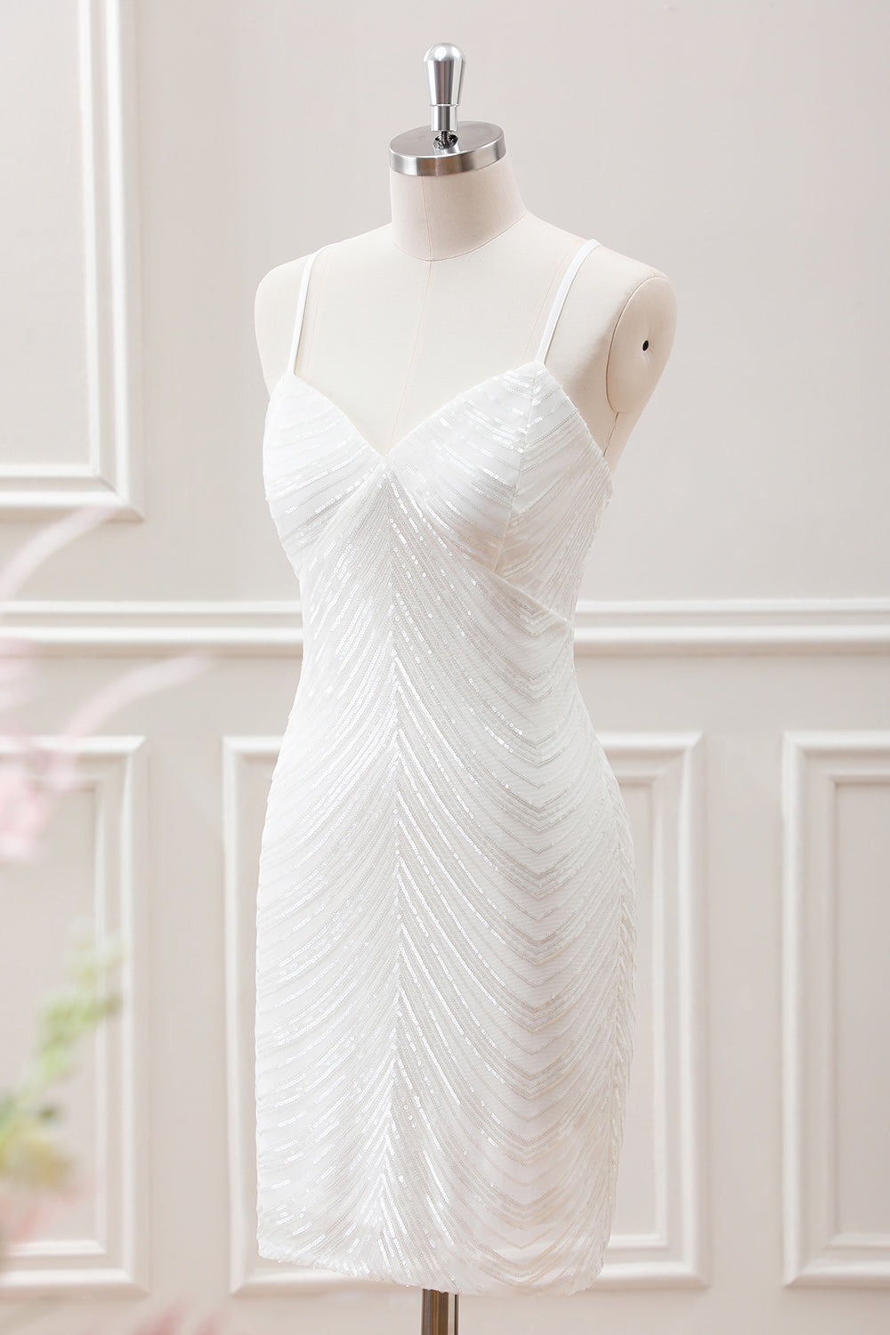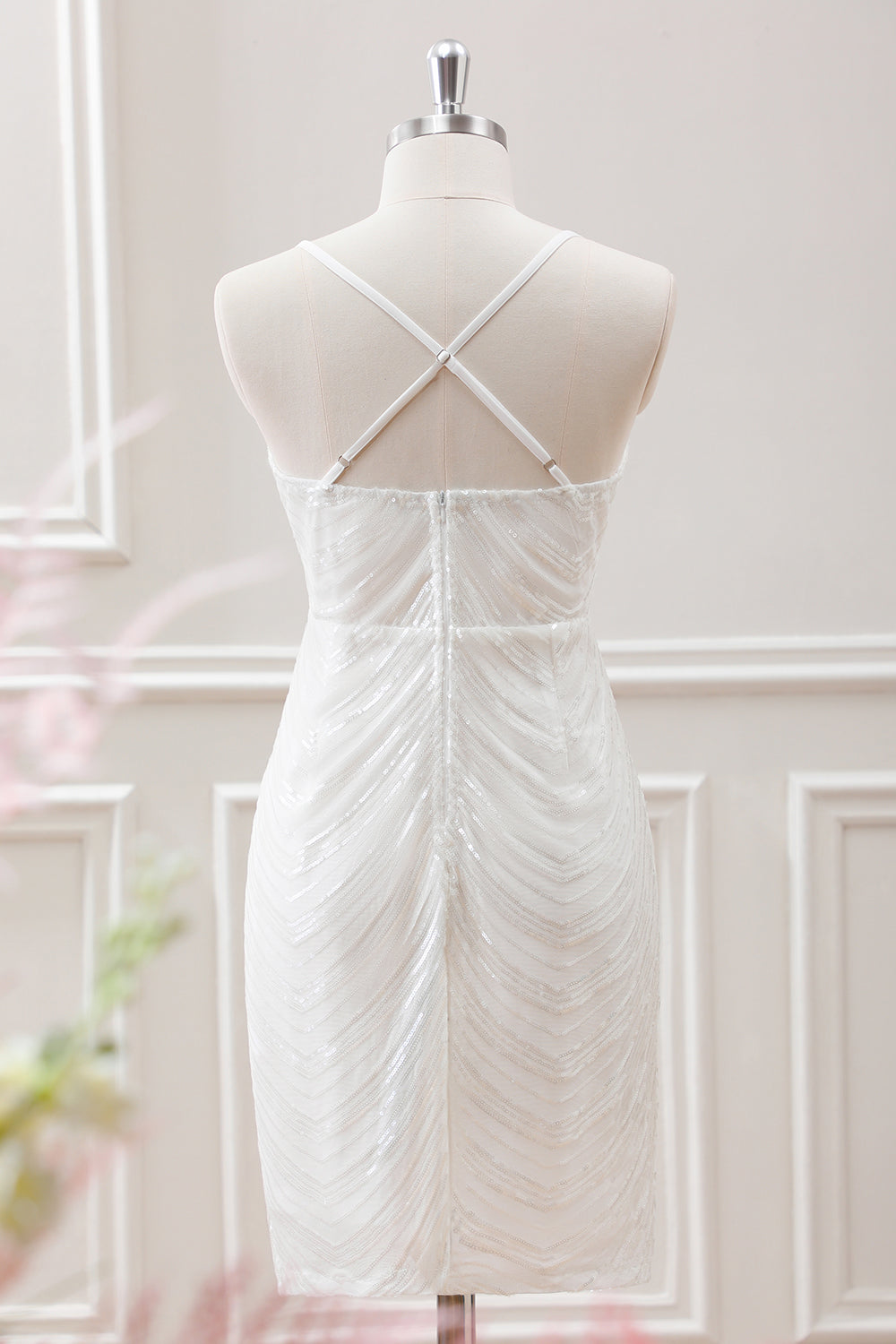 Sparkly White Sequined Spaghetti Straps Criss Cross Back Bodycon Mini Dress
