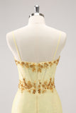 Sparkly Yellow Spaghetti Straps Corset Sequins Tight Mini Dress