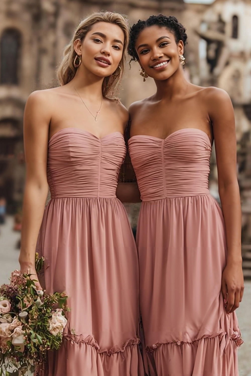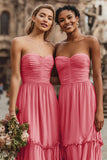 Watermelon A-Line Tiered Strapless Bridesmaid Dress