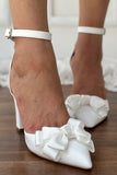 White Bow Pointed Side Hollow High Heels
