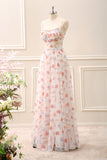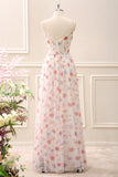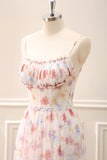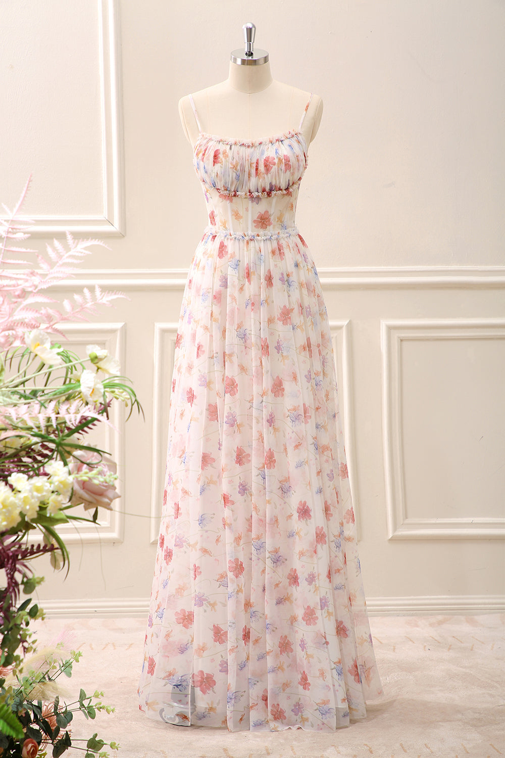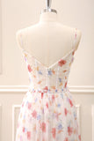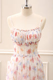 White Red Floral A-Line Spaghetti Straps Maxi Dress