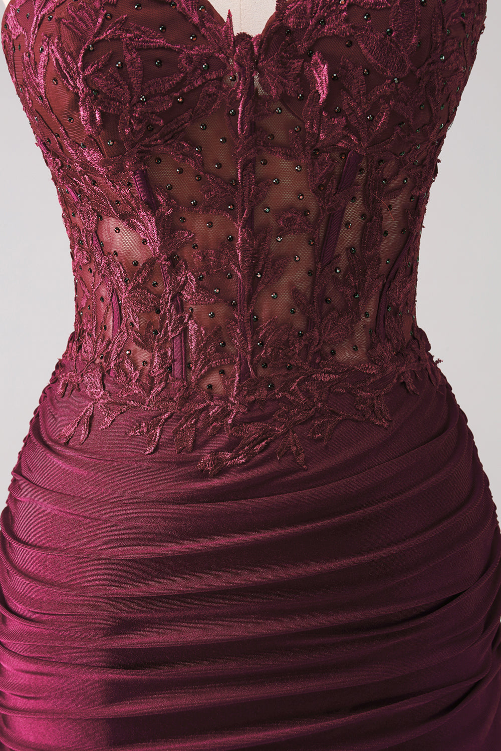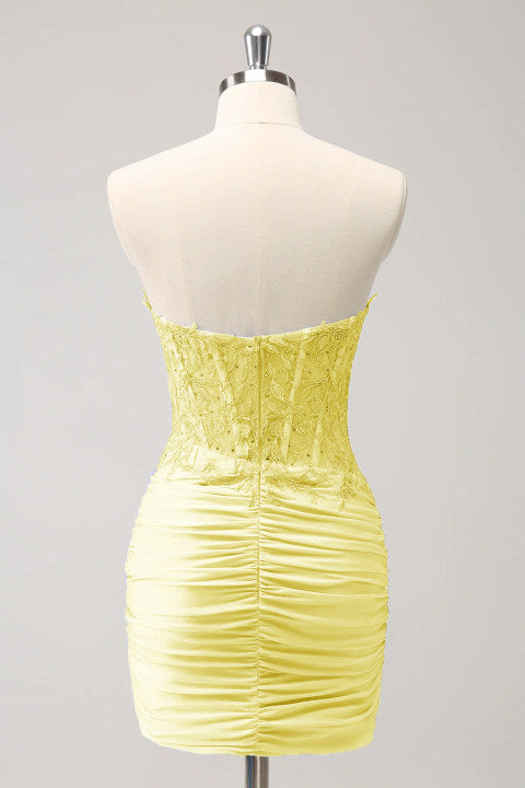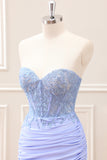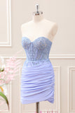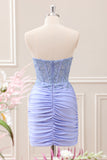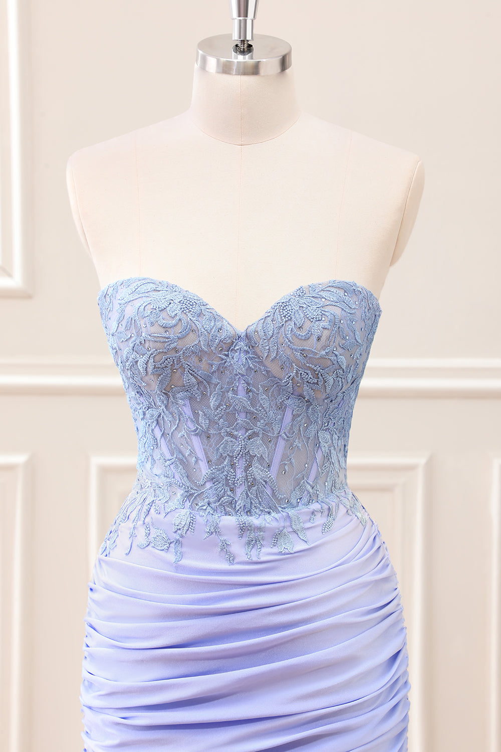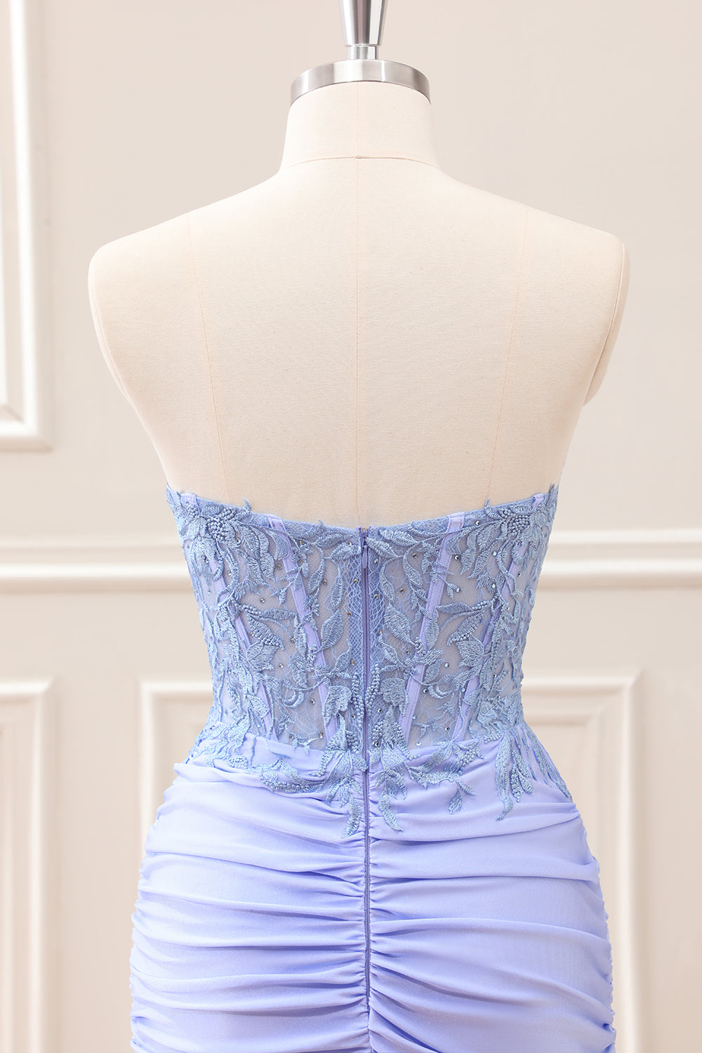 Lilac Strapless Ruched Corset Homecoming Dress with Appliques