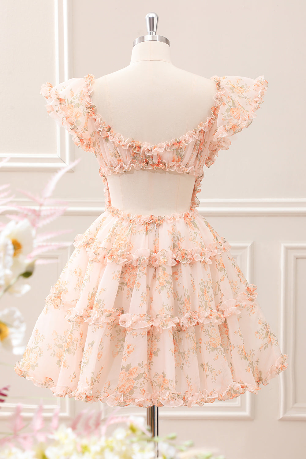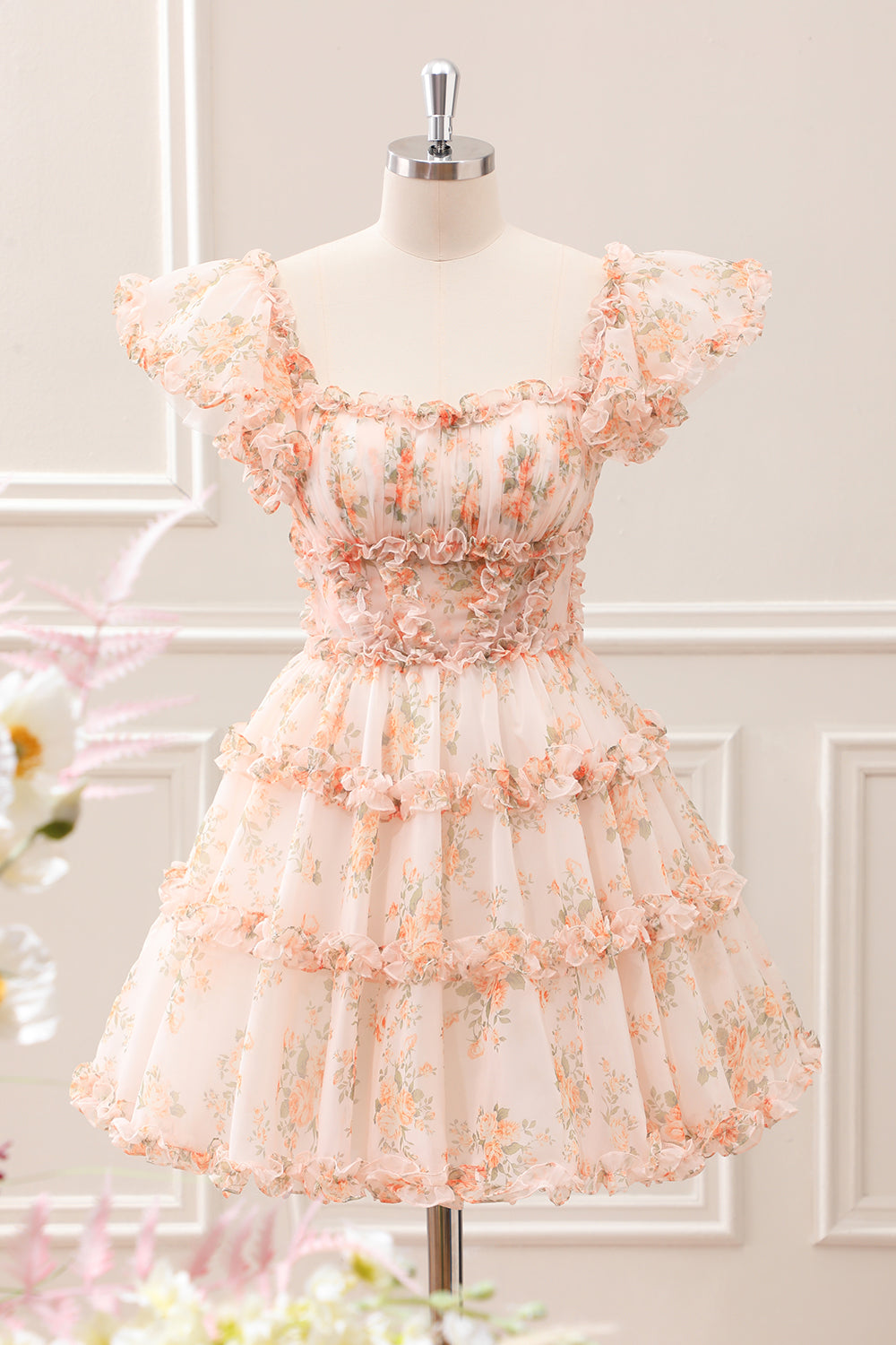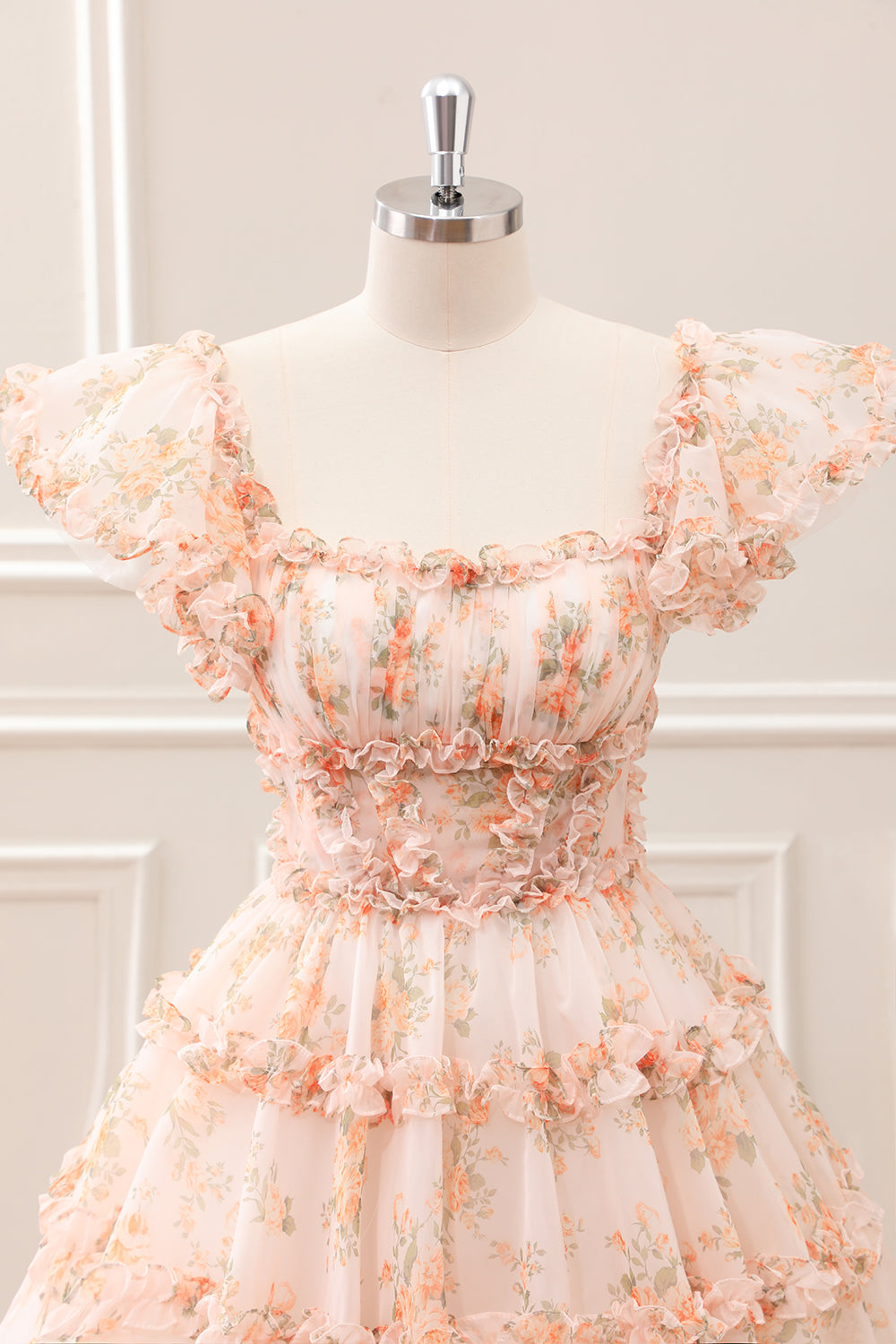 Yellow A-Line Ruffled Floral Print Mini Dress