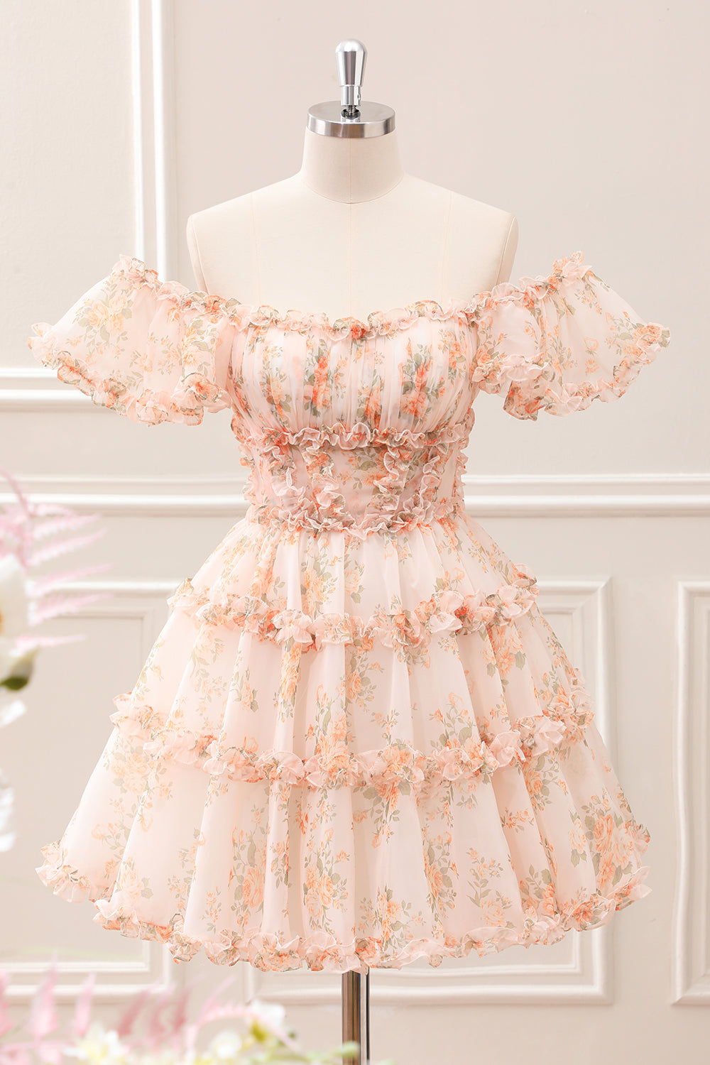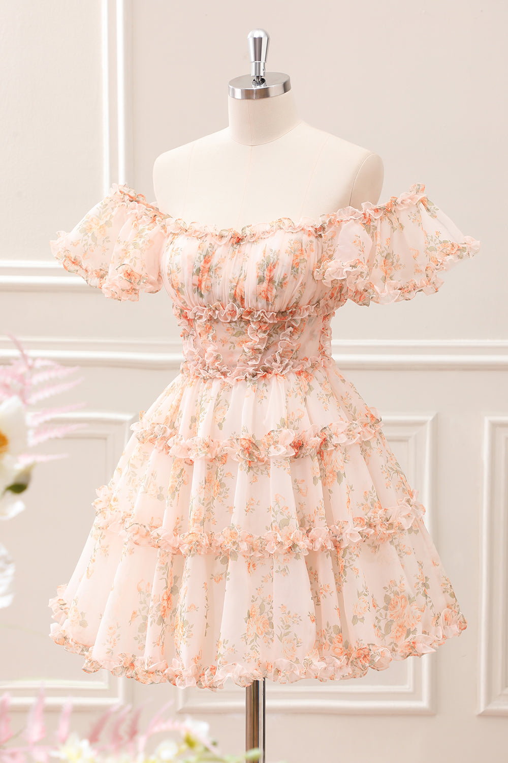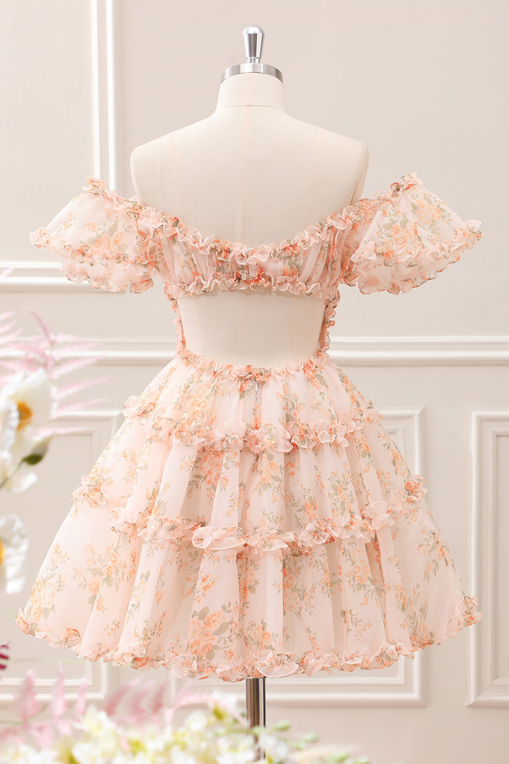 Yellow A-Line Ruffled Floral Print Mini Dress