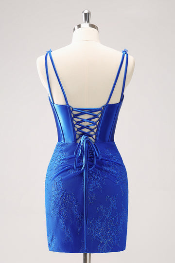 Sparkly Royal Blue Corset Beaded Lace Appliques Tight Mini Dress